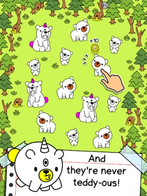 Oyunun kalbinde, benzer ayıları sürükle-bırak yöntemiyle birleştirerek yepyeni, gizemli yaratıklar ortaya çıkarma dinamizmi yatıyor. Her birleşim, ordunuzu daha da güçlendirecek benzersiz türlerin kilidini açar. Ayı yumurtalarını kullanarak değerli paralar kazanabilir, bu paralarla yeni canlılar satın alabilir ve servetinizi katlayabilirsiniz. Alternatif olarak, enerjik bir dokunuşla ayıcıklarınızdan anında para fışkırtabilir, gelir akışınızı hızlandırabilirsiniz. Dikkat! Yüce varlıkların aşağıdan biz ölümlülere bakıp eğlendiği bir Panteon'un yanı sıra, ayılarınızın şöhretini çalmaya çalışan sahtekârlar da var. Onları gözden kaçırmayın!