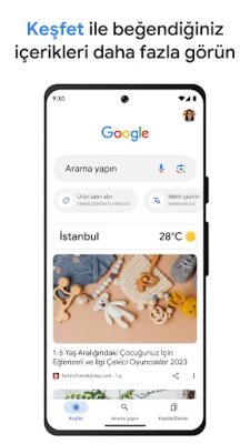 Google, size özel bir bilgi akışı sunarak gününüze güçlü bir başlangıç yapmanızı sağlar. Kişiselleştirilmiş kartlar ve bildirimler sayesinde hava durumu tahminleriyle güne başlayın, sizi ilgilendiren en güncel haber başlıklarını hızla gözden geçirin. Takip ettiğiniz spor dallarındaki gelişmelerden tutun, vizyondaki filmler ve kaçırmak istemediğiniz etkinlikler hakkında anlık güncellemeler alın. Borsadaki dalgalanmaları ve kişisel ilgi alanlarınıza dair en taze bilgileri doğrudan ana ekranınızda görün, böylece her zaman bir adım önde olun. (Not: Bu özellikler tüm bölgelerde kullanılamayabilir.)